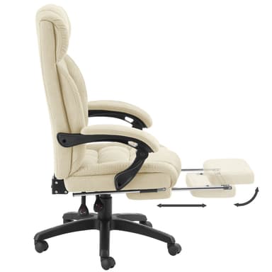 Den roterbara skrivbordsstolen imponerar med det justerbara ryggstödet som följer din ryggrads naturliga kurva för optmial komfort. Tack vare den flexibla gungfunktionen hålls dina muskler i rörelse även under långa arbetsdagar, medan det utfällbara fotstödet och förstärkningen i huvud- och nackområdet ger extra avlastning.