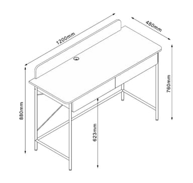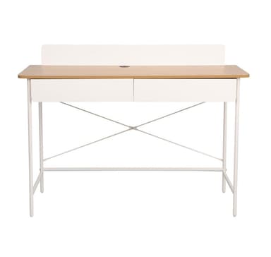 Skrivbord FERDIE med 2 lådor 120x48xH88cm, ask/vit.Material: melaminskiva.Färg: ask/vit.Bordets ben och stomme är gjorda av metall och avslutade med vit pulverlack.Läs mer om produkten