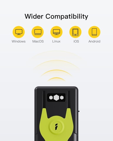 Denna Bluetooth 2D Streckkodsläsare med 2.4 GHz USB-Adapter är en avancerad trådlös streckkodsläsare som snabbt och pålitligt läser både 1D- och 2D-streckkoder, direkt från papper eller bildskärmar. Med tre anslutningsmetoder, exklusiva snabbknappar och lång batteritid är den perfekt för lager, POS-system, kontor och mobil användning.