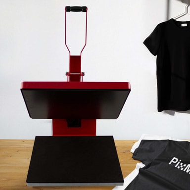 Medan den 50 x 50cm stora värmeplattan erbjuder en tillräckligt stor yta att trycka på en mängd olika föremål, gör dess kompakta struktur att den passar perfekt in i en verkstad eller studio och kan enkelt flyttas tack vare den lättviktiga designen. Maskinen är tillverkad av pulverlackerat stål vilket gör den otroligt robust och tål frekvent användning. Den slående röda finishen förser ett djärvt uttryck till din arbetsplats men är även skyddande för att säkerställa att den ser bra ut under lång tid framöver.
