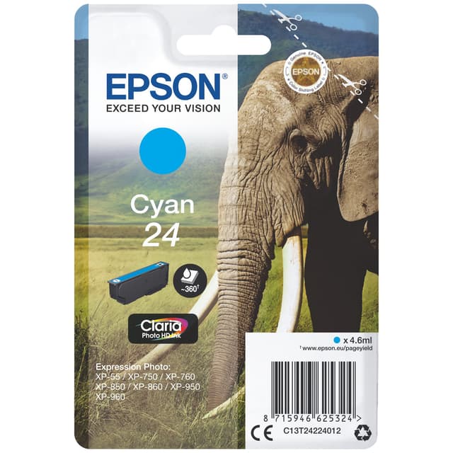 Epson Claria Photo HD 24 cyan bläckpatron till Epson Expression Photo-serien av bläckstråleskrivare låter dig skriva ut fotografier av labbkvalitet med djupa kontraster och mjuka skiftningar av färgnyanser. Med individuella färgpatroner behöver du endast ersätta den som har slut på bläck.