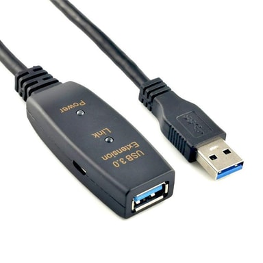 Med NÖRDIC 15m aktiv USB3.1 förlängningskabel kan man övervinna avstånd begränsingar i en traditionell USB kabel (3m i USB 3.0 och 4,5m i USB2.0). Förläng dina USB enheter upp till 15m med en hastighet upp till 5Gbps. Ingen extern strömförsörjning krävs som regel men ansluter du strömkrävande enheter ( tex extern HDD kabinett) kan man använda medföljande USB kabel och en standard USB laddare( medföljer ej).