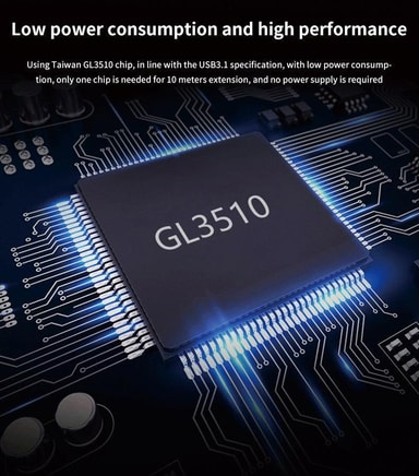 NÖRDIC Aktiv 5m USB3.1 förlängningskabel med förstärkare (GL3510) med 5Gbps dataöverföringshastighet. Bakåtkompatibel med USB2.0 och USB1.1