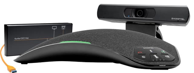 Med Konftel C2070 videokonferens-paket får du videosamtal med professionell kvalitet. Det innehåller en Konftel Cam20 konferenskamera, Konftel 70-högtalartelefon och Konftel OCC Hub som ansluter alla delar.