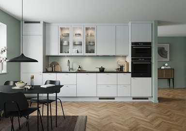 Epoq Trend Grey White är ett utmärkt val för dig som söker ett stilrent, modernt kök med personlig prägel. Den eleganta MDF-fronten med glas har en glasmitt & en mjuk matt yta som ger ett förfinat och avslappnat intryck åt rummet. Med 26 noggrant utvalda färgalternativ kan du skapa allt från ett enkelt, enhetligt uttryck till en livfull blandning av toner. För extra elegans passar Trend-serien vackert ihop med naturliga element som de fanerade designerna från Edge-kollektionen.