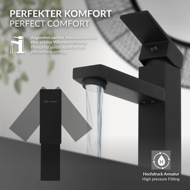 Genom munstycket släpps vattnet ut i en behagligt mjuk stråle. Dessutom är den enkel att använda och du kan justera vattenstrålens styrka. Naturligtvis kan du också justera vattentemperaturen exakt.