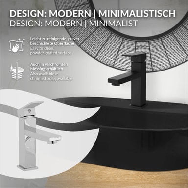 Tvättställsblandaren är tillverkad av högkvalitativt rostfritt stål och har en slät yta, vilket gör den robust och rostfri. Insidan av kranen är tillverkad av högkvalitativ mässing för att förhindra tillväxt av bakterier.
