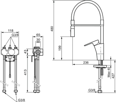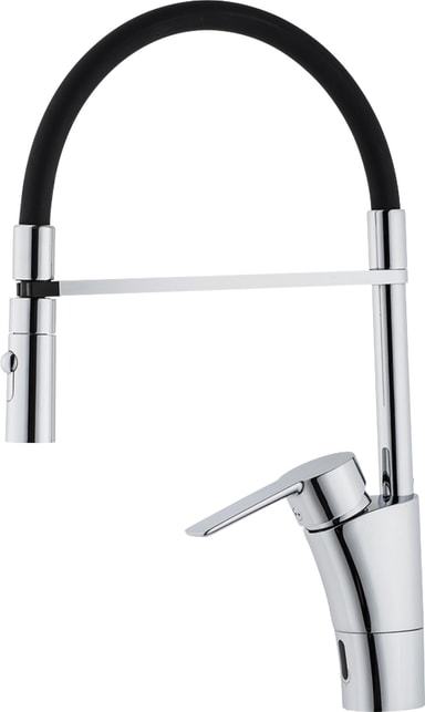 Utrusta ditt kök med Mora Cera Duo Miniprofi kran som ger dig en kran på restaurangnivå hemmavid. Sensorläget säkerställer en mer hygienisk användning samtidigt som vattenförbrukningen minskar. Kranen har ett munstycke med två sprutlägen för sköljning eller regelbundet bruk. Tack vare den medföljande begränsningsdelen kan vridningen begränsas till 60°, 85°, 110° eller 360°. För mer bekväm användning medföljer en keramisk patron med soft close-funktion och en spak med vilken du kan stänga av sensorfunktionen.