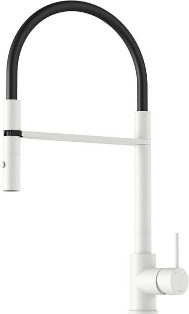 Mora INXX II Minipro köksblandare kombinerar hållbara, högkvalitativa material, distinkt utseende och bekväm drift. Kranen har ett högt munstycke med två spraylägen, ett för sköljning och ett för regelbunden användning. Tack vare begränsningsdelen som ingår i paketet kan du begränsa den vridbara pipen till 60°, 85°, 110° eller 360°. Dessutom är kranen utrustad med en konstantflödesluftare, vilket säkerställer lägre energi- och vattenförbrukning. Mjuka PEX-slangar med 3/8" anslutningsmutter ingår.