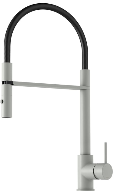 Mora INXX II Minipro köksblandare kombinerar hållbara, högkvalitativa material, distinkt utseende och bekväm drift. Kranen har ett högt munstycke med två spraylägen, ett för sköljning och ett för regelbunden användning. Tack vare begränsningsdelen som ingår i paketet kan du begränsa den vridbara pipen till 60°, 85°, 110° eller 360°. Dessutom är kranen utrustad med en konstantflödesluftare, vilket säkerställer lägre energi- och vattenförbrukning. Mjuka PEX-slangar med 3/8" anslutningsmutter ingår.
