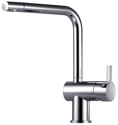 Elegant köksblandare i krom som levereras med flexibel anslutningsslang, Soft-Pex. Den har vridbar pip som begränsas i 60 eller 120 grader och vridbart munstycke med vattenbesparande strålsystem.