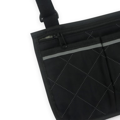 Bekvämt och säkert: Rullstolsväskan är enkel att installera och ta av. Reflekterande remsor ger bättre synlighet när det är mörkt.