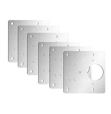Rostfritt stål: Gångjärnsplattan är tillverkad av rostfritt stål och är robust. Med 12 förborrade hål för olika ändamål. Levereras i 6-pack.