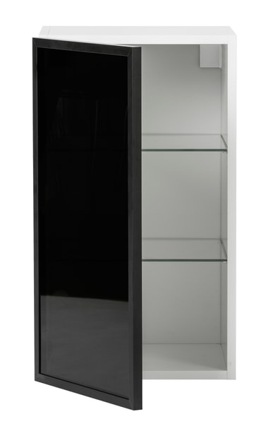 Vitrinlucka med 19 mm tjock svart lackerad aluminium ram. Mörktonat glas, tjocklek 4 mm. Passar bra med t ex Trend och Edge Black Ash.Läs mer om produkten