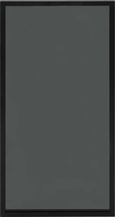 Vitrinlucka med 19 mm tjock svart lackerad aluminium ram. Mörktonat glas, tjocklek 4 mm.