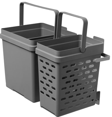Byt ut den traditionella soptunnan i ditt kök mot Epoq 2 källsortering. Denna bekväma avfallslösninghar en 8 l perforerad behållare, idealisk för matavfall och en större 14 l behållare som kan separeras med en avdelare i två sektioner.Soptunnorna kan monteras på sidan av dit skåp, och tack vare sliden kan du enkelt dra ut dem.