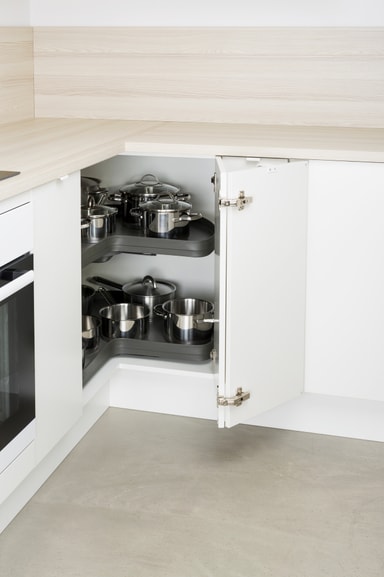Maximera lagringsutrymmet i ditt hörnskåp med Epoq ¾ hörnkarusell. Denna förvaringslösning har två justerbara robusta hyllor med en sammanlagd viktgräns på 50 kg.Läs mer om produkten