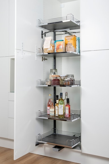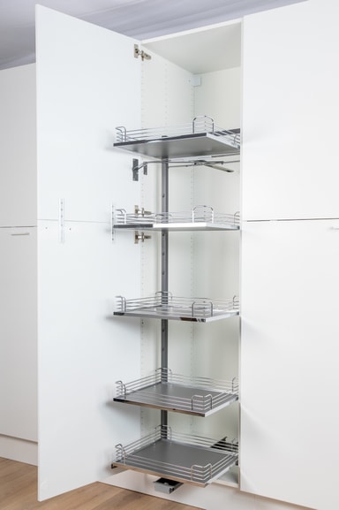 Tandem Solo är en utdragsförvaring i full höjd med förvaring i 5 nivåer för 50 och 60 cm breda högskåp.