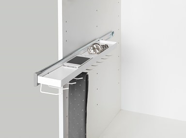 Utdragbar slipshållare med plats för tio slipsar eller bälten och försedd med en liten hylla för småförvaring.Läs mer om produkten