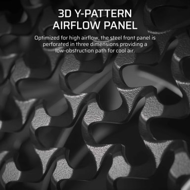 FRAME 5000D håller din dator sval med fyra förinstallerade RS140 ARGB-fläktar, en frontpanel med högt luftflöde och 3D Y-mönster, samt stöd för stora 420 mm element. De flexibla fläktfästena låter dig rikta luftflödet exakt dit det behövs för effektiv och tyst kylning.