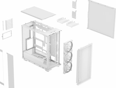 Detta PC-chassi har en solid stålsidopanel och en meshfront för luftflöde. Genomtänkta designdetaljer som en mjuk tygdragflik och ett aluminiummärke ger en förfinad känsla. Layouten är ren och rymlig, vilket gör kabelhantering och hårdvaruinstallation enkel och snygg.
