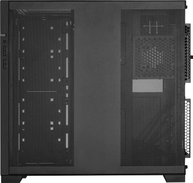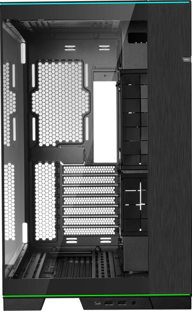 O11D EVO har främre och sidopaneler i härdat glas med en löstagbar pelare.