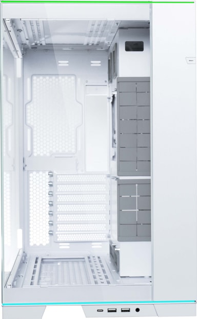 Lian Li O11 har dubbla L-formade ARGB-ljuslister upptill och nedtill, som ger din dator levande och anpassningsbar belysning.