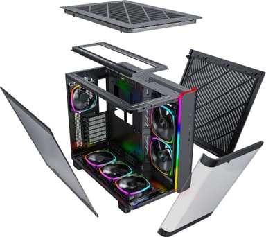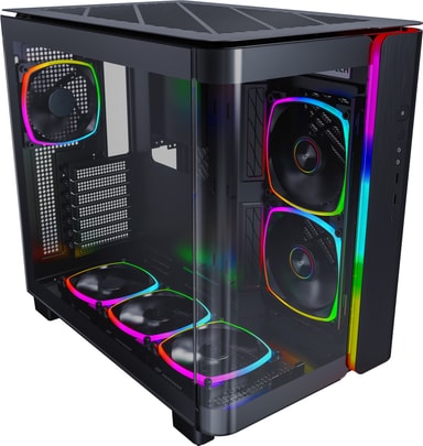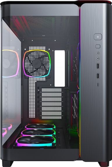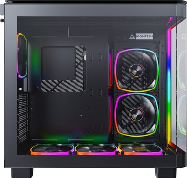 Montech King 95 Pro svart datorchassi har böjt härdat glas, tvåkammardesign, patenterat sidomonterat fläktfäste och premiumgallerpanel, med stöd för upp till 9 fläktar och förstklassig kylning.Läs mer om produkten