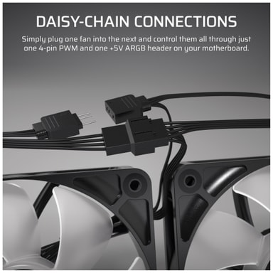 Säg hejdå till röran av kablar med denan innovativa kedjedesign och hantera dina fläktar bekvämt med en enda 4-stifts PWM. Varje fläkt ansluts till nästa med hjälp av en magnetisk förreglingsmekanism, vilket effektiviserar installationsprocessen och håller PC-interiören snygg.