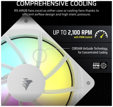 • Corsair RS120 ARGB 120mm PWM-fläkt (vit)