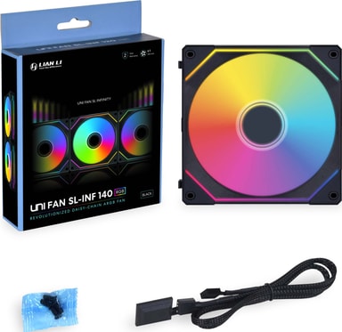 Lian Li UNI FAN SL INF 140mm infinity RGB PWM-fläkten är designad för att se lika bra ut som den presterar. Med 40 livfulla RGB-lysdioder ger den stil till din dator. Den är enkel att installera med en snabb PIN-anslutning och endast en kabel behövs för en grupp av fläktar.