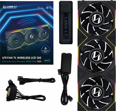 Lian Li UNI TL trådlös LCD 120mm omvänd PC-fläkt (3-pack, svart)