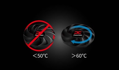Den intelligenta fläktstyrningen använder ett smart chip för temperaturdetektering som aktiverar fläktarna när GPU:n når 60℃ och stänger av dem under 50℃. Denna precisa temperaturövervakning förbättrar kyleffektiviteten och minskar fläktljudet.