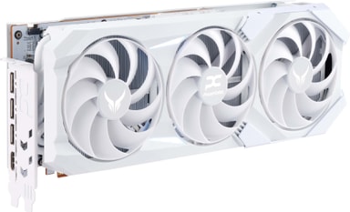 Grafikkortet har ett vitt PCB tillverkat av ett 12-lagers material med hög värmeledningsförmåga. Denna konstruktion förbättrar signalstabiliteten och säkerställer konsekvent prestanda.