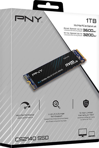 PNY CS2140 M.2 Gen 4 intern SSD låter dig uppgradera lagringen hos din stationära eller bärbara dator med 1 TB minne. Läshastigheten på upp till 3600 MB/s och skrivhastigheten på upp till 3200 MB/s betyder mycket snabb uppstart och dataöverföring.Läs mer om produkten