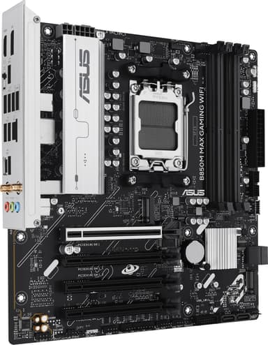 ASUS B850M MAX Gaming Wi-Fi-moderkort är ett microATX-moderkort byggt för AMD AM5-processorer och använder AMD B850-kretsuppsättningen. Det är kompakt, kraftfullt och perfekt för spelriggar där utrymmet är begränsat.Läs mer om produkten