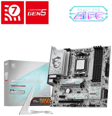 MSI B850M GAMING PLUS WIFI moderkort levererar maximal prestanda med stöd för AMD Ryzen™ 9000, DDR5-hastigheter upp till 8200+ MT/s, PCIe 5.0 M.2, Wi-Fi 6E och 2.5G LAN, vilket ger spelare oöverträffad anslutning och kraft i ett kompakt ATX-format.Läs mer om produkten