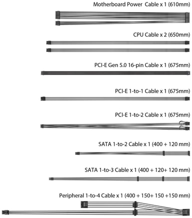 • PCI-E Gen 5 16-stiftskabel x 1 (675 mm)