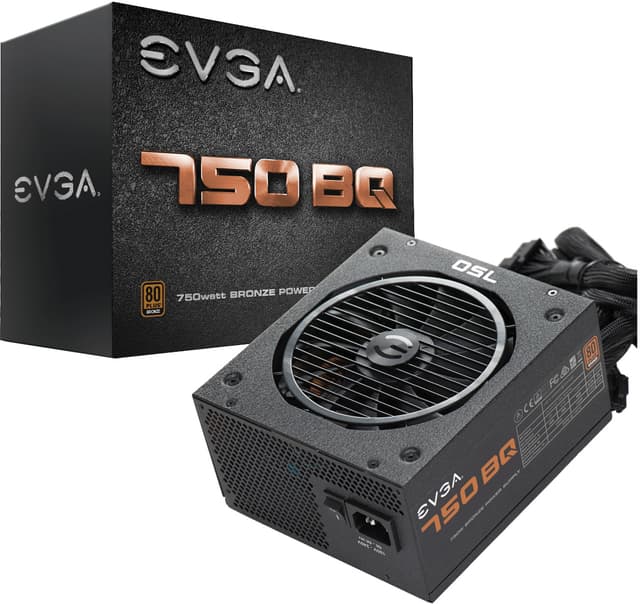 EVGA BQ 750W 80+ Bronze power supply is an 80 plus certified bronze power supply that delivers renowned EVGA reliability, performance, and affordability. It uses a 140mm fan with silent operation and modular cables for your convience.
