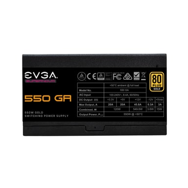 EVGA SuperNOVA 550 GA. Total effekt: 550 W, AC-inspänning: 100 - 240 V, Växelström Frekvens: 50/60 hz. Moderkort strömkontakt: 24-pin ATX, Längd, moderkortets strömförsörjningskabel: 60 cm, SATA-nätkabelns längd: 550,650,750 mm. Ändamål: PC, Strömförsörjningsenhet formfaktor: ATX, 80 plus-certifiering: 80 PLUS Gold. Produktens färg: Svart, Kylning typ: Aktiv, Fläktdiameter: 13,5 cm. Kabel inkluderad: AC