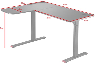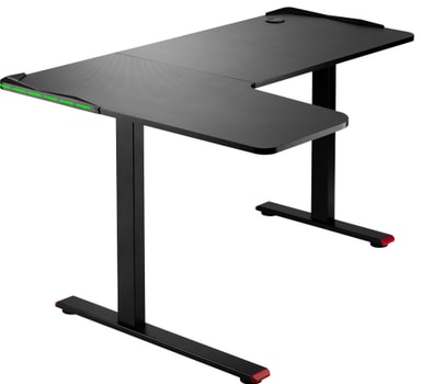 Piranha L-shaped RGB skrivbord för gaming passar enkelt in i alla hörn och ger tillräckligt med utrymme för din spelutrustning och tillbehör tack vare dess L-form.Läs mer om produkten
