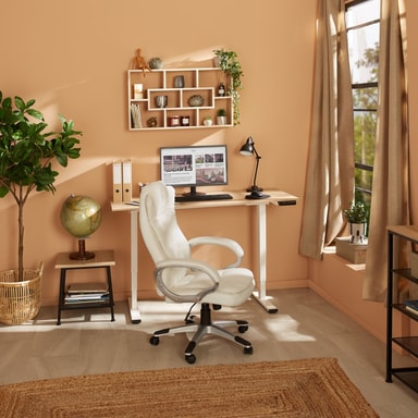 Arbeta med högre nivåer av koncentration och öka produktiviteten: med detta mångsidiga höj- och sänkbara skrivbord Twain i metall, säkerställer du idealiska arbetsförhållanden på ditt kontor och företag. Önskad skrivbordshöjd kan ställas in elektriskt, snabbt och tyst. Stålbasbenen har ett smart antikollisionssystem som känner igen hinder och stannar innan något eller någon skadas. Detta stativ, som också är variabel i bredd, tillåter användning av ett omfattande urval av bordsbänkskivor, så att du kan skapa din egen stil. Flexibla möbler som lönar sig: detta höj- och sänkbara skrivbord Twain från tectake.