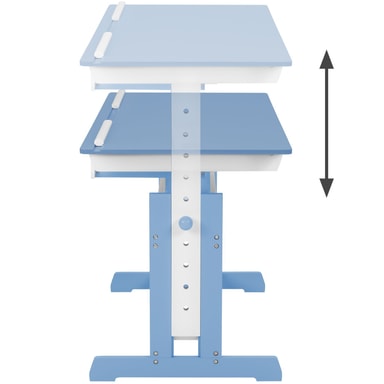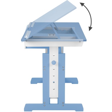 Med detta skrivbord blir läxläsningen rolig för ditt barn! Skrivbordet har en praktisk låda för förvaring, där ditt barn kan förvara sina favoritsaker och ha ordning på sina saker. Eftersom skrivbordet är både höj- och sänkbart, växer det med ditt barn, från skolstarten och framåt, vilket ger en bra grund för skolåren. Skrivbordet har även en lutbar yta och två uttagbara kantlister som förhindrar att pennor, papper och andra saker glider av. De rundade hörnen minskar risken för skador och ger skrivbordet en genomtänkt och säker design.