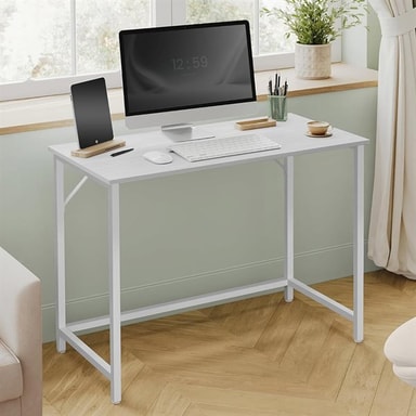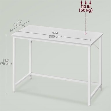 Få en ren och funktionell arbetsplats med detta vita skrivbord i minimalistisk design. Med sina mått på 100 x 50 x 76 cm är det perfekt för mindre kontor, sovrum eller studentrum där ytan är begränsad men funktionaliteten viktig. Den släta bordsskivan ger tillräckligt med utrymme för laptop, böcker och kontorsmaterial.