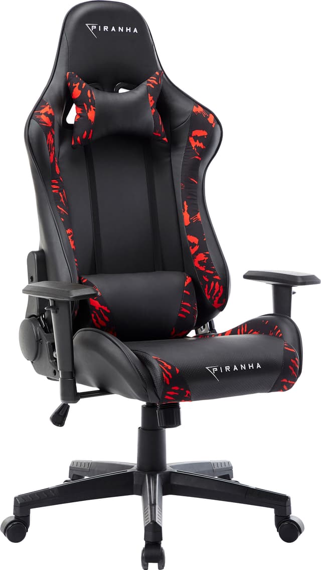 Piranha Bite gamingstol ger dig utmärkt komfort under de viktigaste slagen framför skärmen. Det prickade konstlädret ger dig bra ventilation, och med stöd får både rygg och nacke kan du enkelt ta kontoll över alla situationer när du spelar. Stolens hållbara nylonbas ger hög stabilitet.