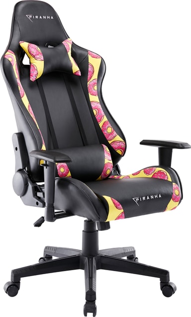 Piranha Bite gamingstol ger dig utmärkt komfort under de viktigaste slagen framför skärmen. Det prickade konstlädret ger dig bra ventilation, och med stöd får både rygg och nacke kan du enkelt ta kontoll över alla situationer när du spelar. Stolens hållbara nylonbas ger hög stabilitet.