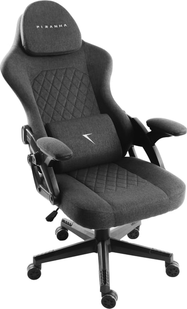 Piranha BITE Lite gamingstol kombinerar ergonomisk komfort med en modern mörkgrå tygdesign. Med kallskumsstoppning, skjutbara armstöd och justerbart nackstöd ger den pålitligt stöd för långa spel- eller arbetspass.Läs mer om produkten
