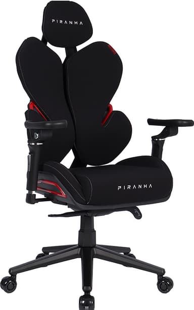 Piranha Nomics X1 gamingstol är utrustad med 5D-justerbara armstöd, ett 2D-anpassningsbart nackstöd och en justerbar sits. Det inbyggda svankstödet håller dig avslappnad och ger bra stöd.Läs mer om produkten