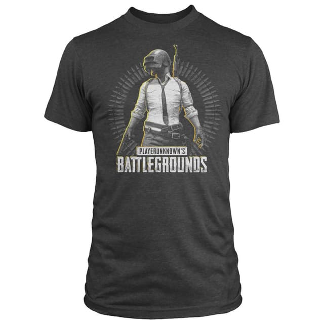 Grey J!NX T-shirt with PlayerUnknown's Battlegrounds' Level 3 design. 100 percent cotton, lightweight shirt with comfortable wear. Officially licensed by PUBG.
