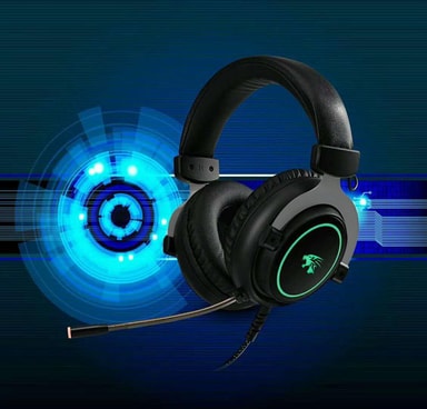 Ergonomiskt sköna med häftig design: Öronkuddarna är mjuka och ligger bekvämt mot dina öron, samtidigt som hela headsetet är producerat i ett mjukt och ergonomiskt material som gör att du bär det komfortabelt under en längre tid utan att det blir obekvämt. Logotypen på sidan av hörlurarna lyses upp i olika färger i ett LED-ljus och hörlurarna är utrustade med ett 7.1 stereoljud.